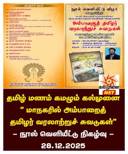 தமிழ் மணம் கமழும் கல்முனை ” மாநகரில் அம்பாறைத் தமிழர் வரலாற்றுச் சுவடுகள்” – நூல் வெளியீட்டு நிகழ்வு – 28.12.2025