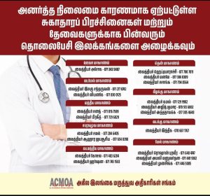 சுகாதாரப் பிரச்சனைகளுக்கு சித்த மருத்துவமூடான இலவச மருத்துவ ஆலோசனைக்கு அழையுங்கள்