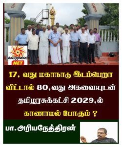 17, வது மகாநாடு இடம்பெறா விட்டால்80,வது அகவையுடன் தமிழரசுக்கட்சி 2029,ல் காணாமல் போகும்! ...