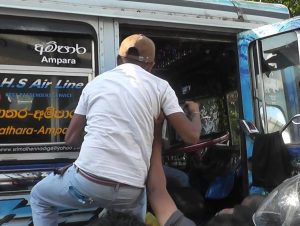 அம்பாறை பிரதான பேருந்து தரிப்பிடத்தில் சிறு பதற்றம்-மாத்தறை பகுதிக்கு சென்ற பேருந்துக்கு எதிராகப் போராட்டம்.