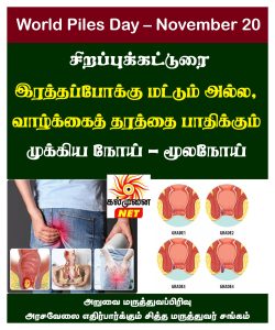 இரத்தப்போக்கு மட்டும் அல்ல, வாழ்க்கைத் தரத்தை பாதிக்கும் முக்கிய நோய் – மூலநோய் -World Piles Day – November 20