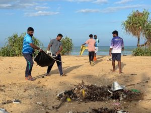 காரைதீவில் விளையாட்டு வீரர்கள் சுயமாக முன்வந்து கடற்கரை சுத்தம் செய்தனர்.