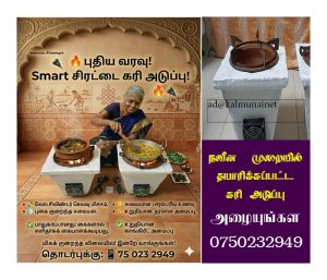 விளம்பரம் – நவீனமுறையில் தயாரிக்கப்பட்ட கரி அடுப்பினை பெற்றுக்கொள்ள இன்றே அழையுங்கள் – 0750232949
