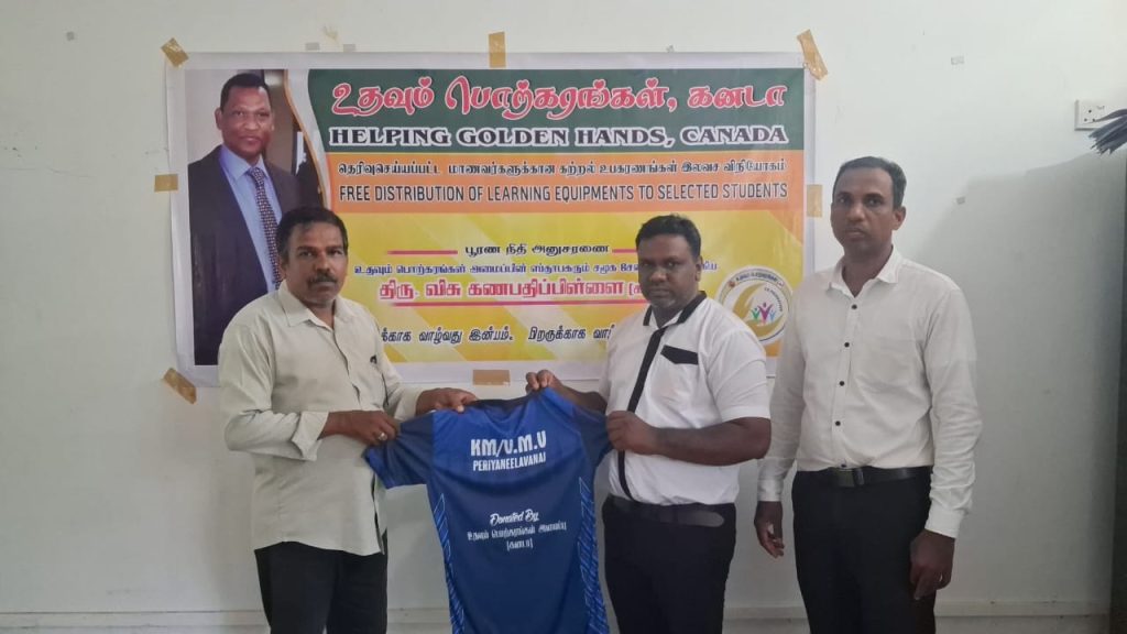 பெரிய நீலாவணை விஷ்ணு மகா வித்தியாலயத்தில் உதவும் பொற்கரங்களின் ஸ்தாபகர் விசு கணபதிப்பிள்ளையின் பூரண நிதிபங்களிப்பில் பெரிய நீலாவணை கல்வி அபிவிருத்தி ஓன்றியத்தின் ஏற்பாட்டில்(பெடோ அமைப்பு) பெண் மாணவர்களுக்கான விளையாட்டு சீருடை வழங்கப்பட்டன.