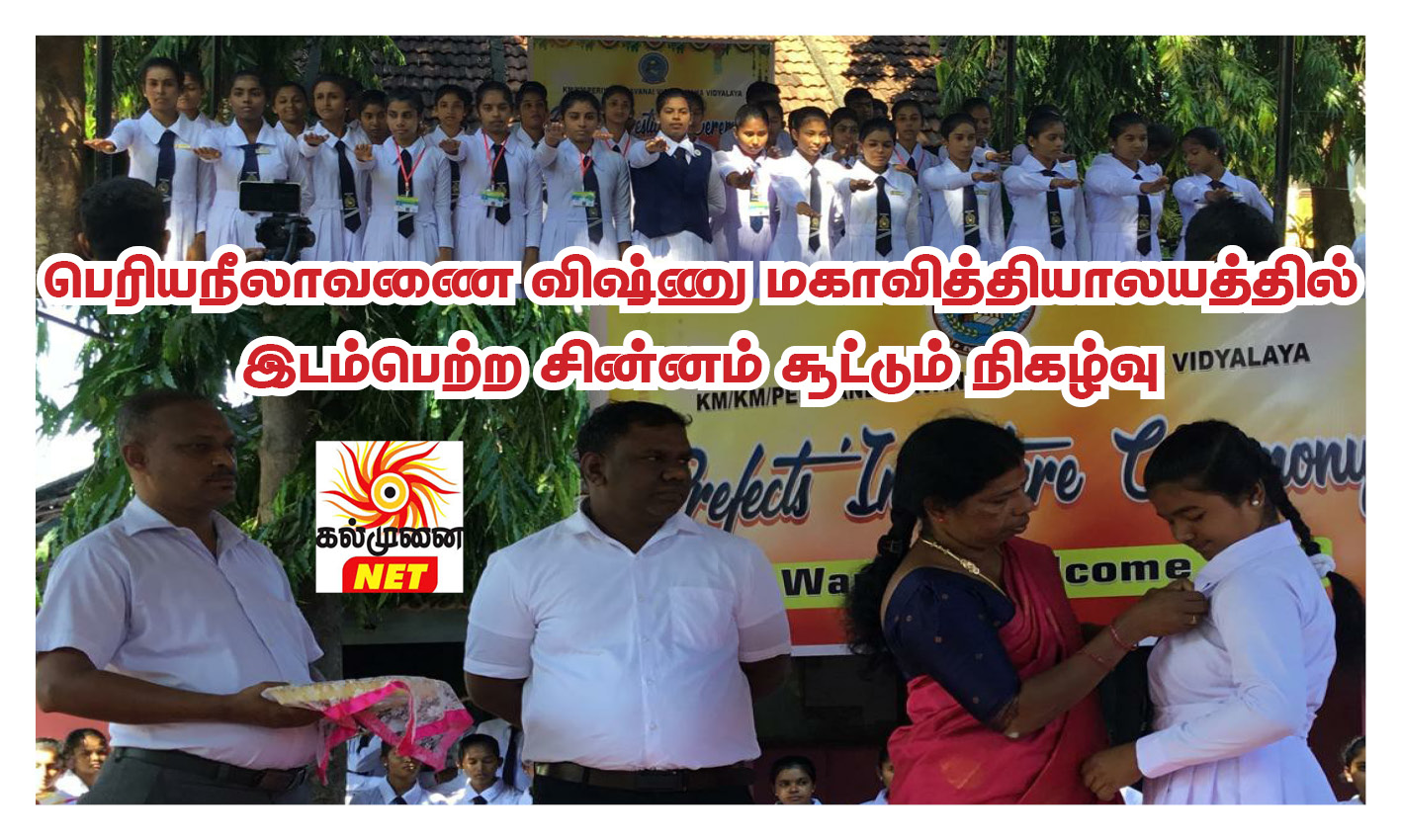 பெரியநீலாவணை விஷ்ணு மகாவித்தியாலயத்தில் பெரிய நீலாவணை கல்வி அபிவிருத்தி ஓன்றியத்தின் ஏற்பாட்டில்(பெடோ அமைப்பு) மாணவத் தலைவர்கள், வகுப்பு தலைவர்களுக்கு தலைமைத்துவ சின்னங்கள் சூட்டும் நிகழ்வு இடம்பெற்றது.