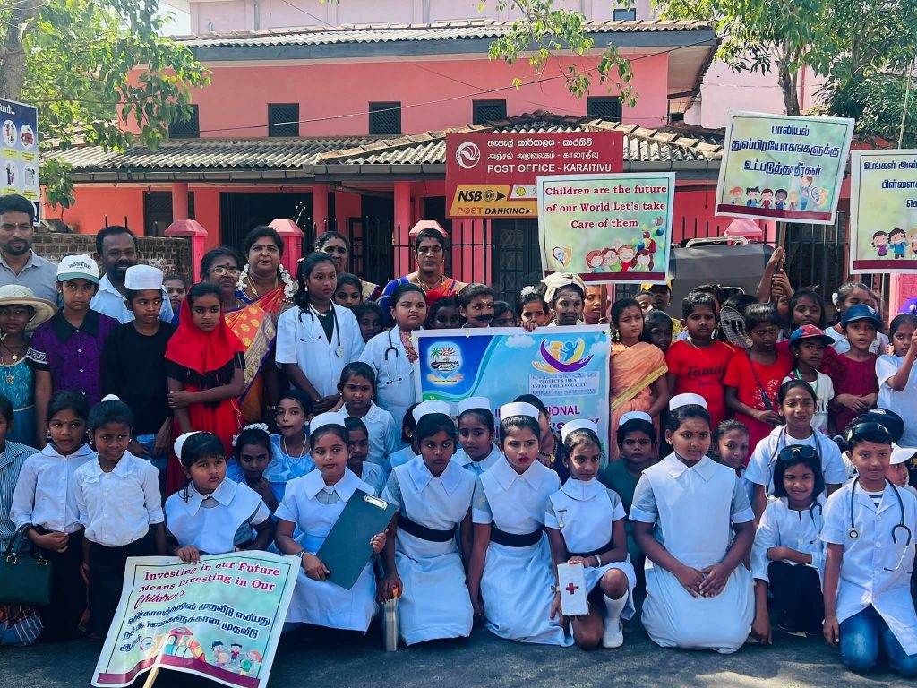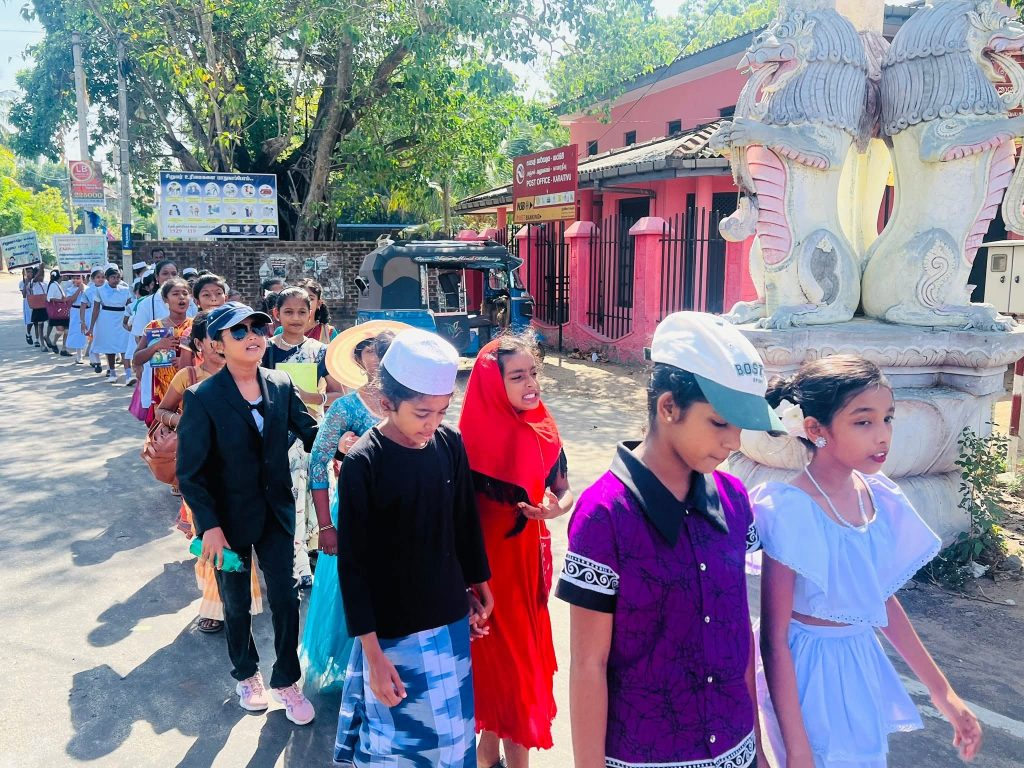 சர்வதேச சிறுவர் தினத்தையொட்டி காரைதீவு  இகிச பெண்கள் பாடசாலையின் சிறுவர் தின நடை பவனி இன்று (01)  புதன்கிழமை நடைபெற்ற போது..