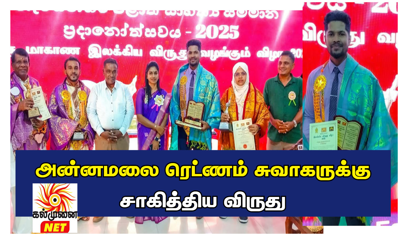 கிழக்கு மாகாண பண்பாட்டலுவல்கள் திணைக்களத்தின் இலக்கிய விருது விழாவில் அம்பாறை மாவட்டத்தின் நாவிதன்வெளி பிரதேசத்தின் அன்னமலை கிராமத்தை சேர்ந்த ரெட்ணம் சுவாகர் அவர்களது “இரகசியங்களால் ஆன ஒற்றை வரிக்கோடு” கவிதை நூலுக்கு சாகித்திய விருது கிடைத்தது.