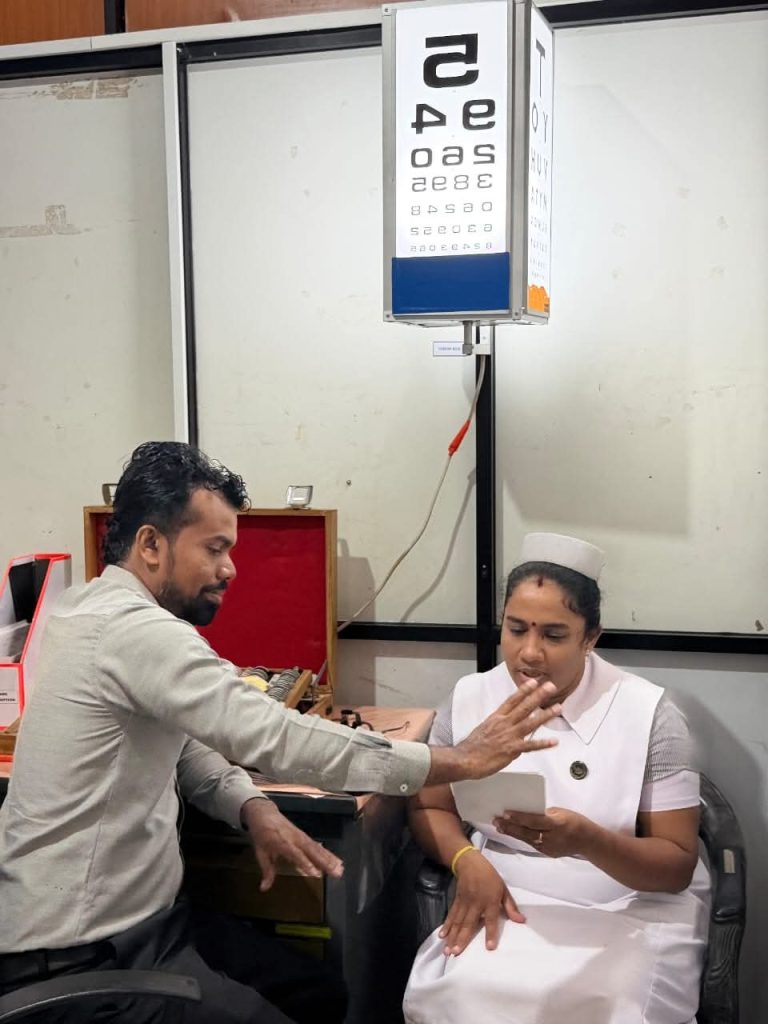 சர்வதேச பார்வை தினத்தை (17.10.2025) முன்னிட்டு கல்முனை ஆதார வைத்தியசாலையில்   பணிப்பாளர் கலாநிதி டாக்டர் சுகுணன் குணசிங்கத்தின் ஆலோசனைக்கிணங்க வைத்தியசாலையின் உத்தியோகத்தர்கள் ஊழியர்கள் அனைவருக்குமான கண்பார்வை பரிசோதனை நேற்று முன்தினம் நடைபெற்றது.