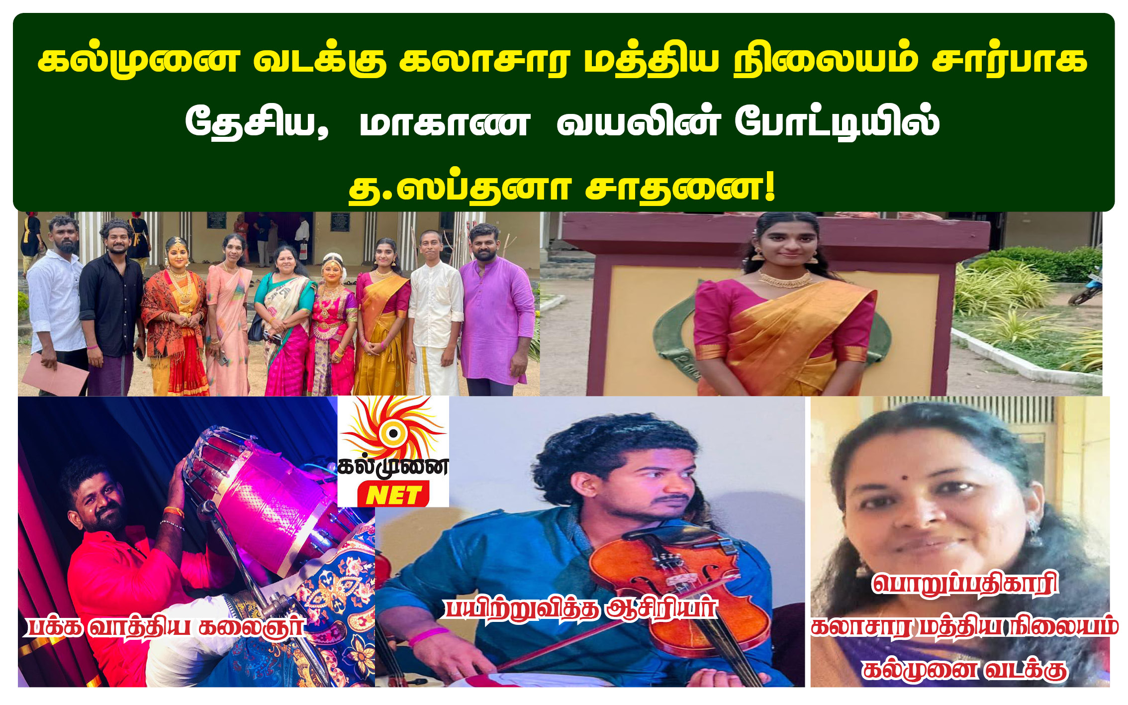 வயலின் ( சிரேஷ்ட பிரிவு) போட்டியில் பங்குபற்றிய த.ஸப்தனா எனும் மாணவி மாகாண மட்டத்திலும் தேசிய மட்டத்திலும் முதலாமிடத்தினைப் பெற்றுள்ளார்.