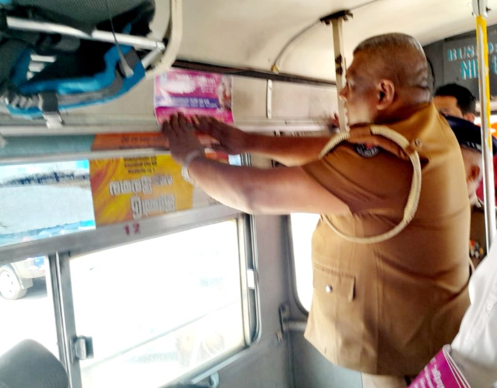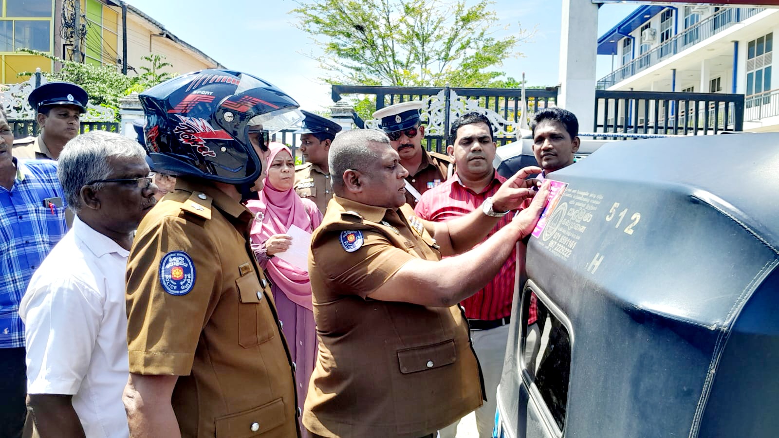 கல்முனை தலைமையக பொலிஸ் நிலைய பொறுப்பதிகாரி கே.ஏ.எல்.லசந்த களுஆராச்சி தலைமையில் முன்னெடுக்கப்பட்ட இந்நிகழ்வில் பொதுப் போக்குவரத்து சேவையில் ஈடுபடும் முச்சக்கர வண்டிகள் மற்றும் அரச, தனியார் பஸ்கள் அனைத்திலும் இந்த ஸ்டிக்கர் ஒட்டப்பட்டது.