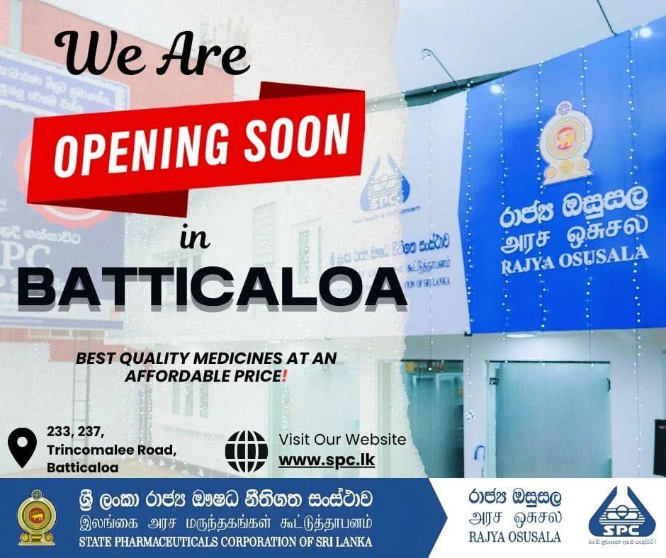 மக்களுக்கு நியாயமான விலையில் சிறந்த மருந்துகளை வழங்கும் உன்னத நோக்கத்துடன், அரச மருந்தகக் கூட்டுத்தாபனத்தின் (SPC) அரச மருந்தகம் – மட்டக்களப்பு கிளை ஒக்டோபர் 31 ஆம் திகதி பொது மக்களின் பாவனைக்காக திறக்கப்படும்.