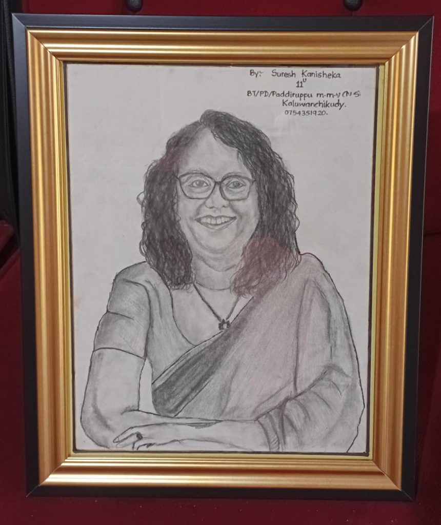 அத்துடன் 11 ஆம் வகுப்பு மாணவி செல்வி சுரேஸ் கனிஷேகா பிரதமரின் உருவத்தை பென்சில் வர்ணத்தினால் வரைந்த ஓவியத்தையும் பிரதமருக்கு வழங்கியிருந்தார். மாணவியை வாழ்த்திய பிரதமர் நன்றியும் கூறினார்.