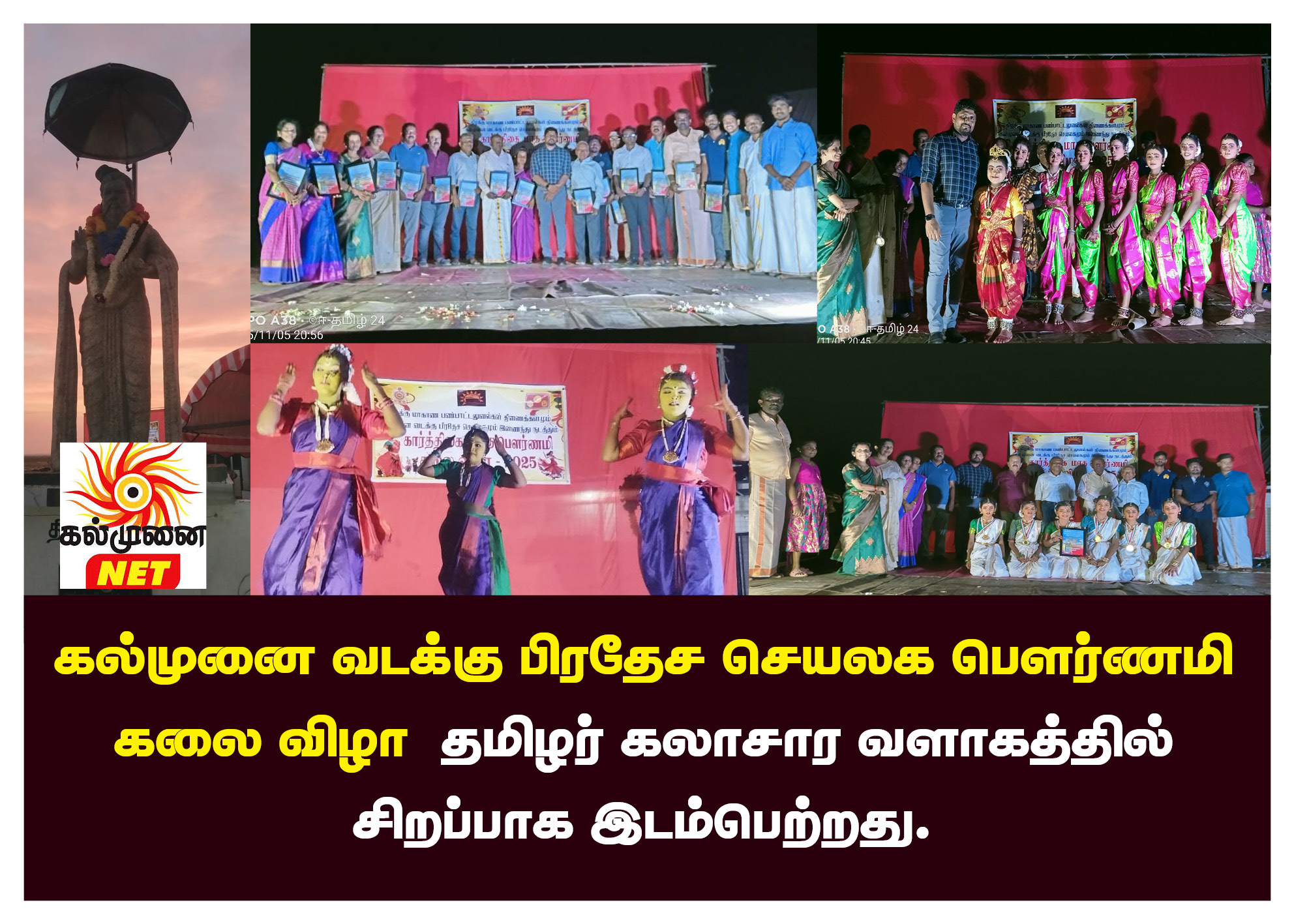 கிழக்கு மாகாண பண்பாட்டலுவல்கள் திணைக்களத்தின் அனுசரணையுடன் வடக்கு பிரதேச செயலகத்தின் ஏற்பாட்டில் மாதம் தோறும் இடம்பெறுகின்ற பௌர்ணமி கலை விழாவின் இம்மாத நிகழ்வுக்கு கல்முனை ராவணா மற்றும் ரோயல் விளையாட்டு கழகங்கள் ஒத்துழைப்பு வழங்கி இருந்தமை குறிப்பிடத்தக்கது.