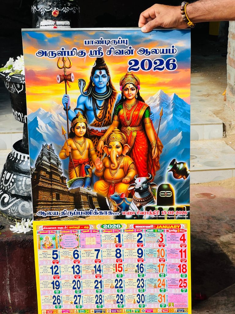 சிவபெருமானின் உருவப்படத்துடனான இந்த பஞ்சாங்க நாட்காட்டியை பெற விரும்புவோர் ஆலய நிர்வாகத்தடன் தொடர்பு கொண்டு பெற்றுக் கொள்ளலாம்