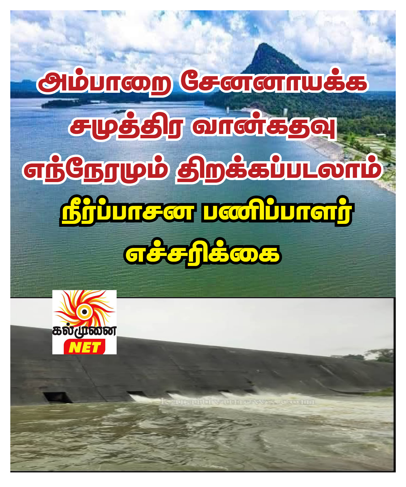 அம்பாறை சேனனாயக்க சமுத்திர அணைக்கட்டின் வான்கதவு எந்நேரமும் திறக்கப்படலாம். எனவே மக்கள் பாதுகாப்பாக இருக்க வேண்டும்.