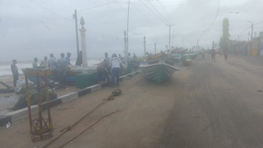 இதனால் அப்பகுதியில் உள்ள வள்ளங்கள் தோணிகள் படகுகளை கரையை நோக்கி மீனவர்கள் நகர்த்தி வருகின்றனர்.
