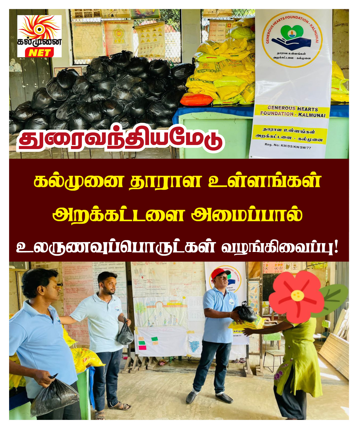 வெள்ளத்தினால் மிகவும் பாதிக்கப்பட்டு போக்குவரத்து அற்று துண்டிக்கப்பட்டிருந்த துரைவந்தியமேடு அனைத்து குடும்பங்களுக்குமான உலர் உணவுகள், குடி நீர் மற்றும் அரிசி என்பன கல்முனை தாராள உள்ளங்கள் அறக்கட்டளை அமைப்பின் நிருவாகிகளால் கிராம சேவை உத்தியோகத்தரின் முன்னிலையில் வழங்கி வைக்கப்பட்டன நேற்று 01/12/2025 அன்று வழங்கி வைகப்பட்டது.