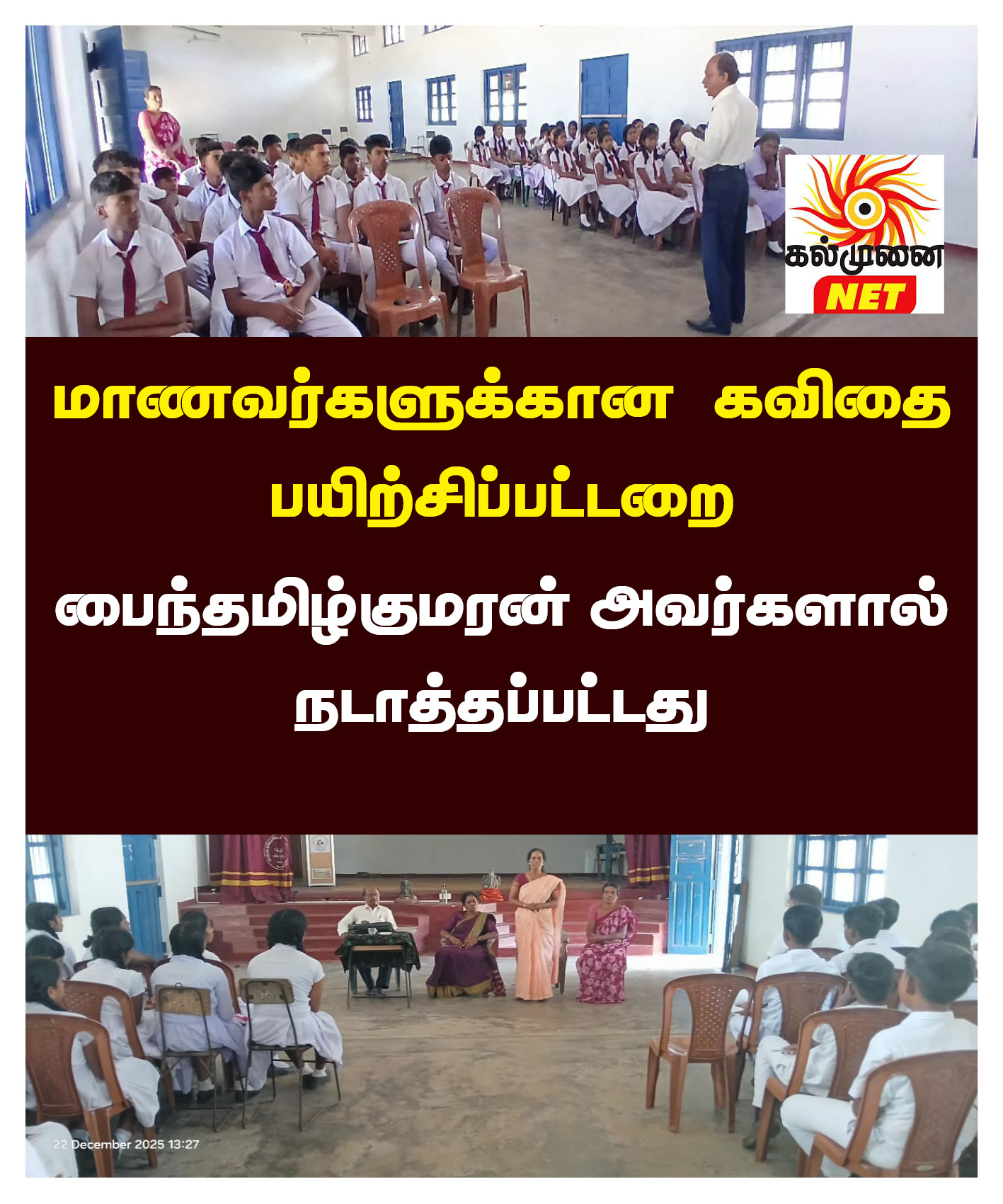 பாடசாலை அதிபர், தமிழ் மொழிப்பாட ஆசிரியர்களது வேண்டுகொளின்படி 22.12.2025 இன்று இப்பயிற்றசிப்பட்டறை க.பொ.த சாதாரண தரம் ,க.பொ.உ தர வகுப்பு மாணவர்களுக்காக ஒழுங்கு செய்யப்பட்டு நடைபெற்றது.