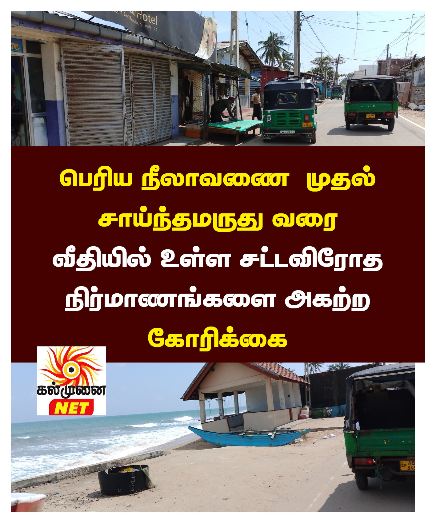 பெரிய நீலாவணை  முதல் சாய்ந்தமருது வரை வீதியில் உள்ள சட்டவிரோத நிர்மாணங்களை அகற்ற கோரிக்கை