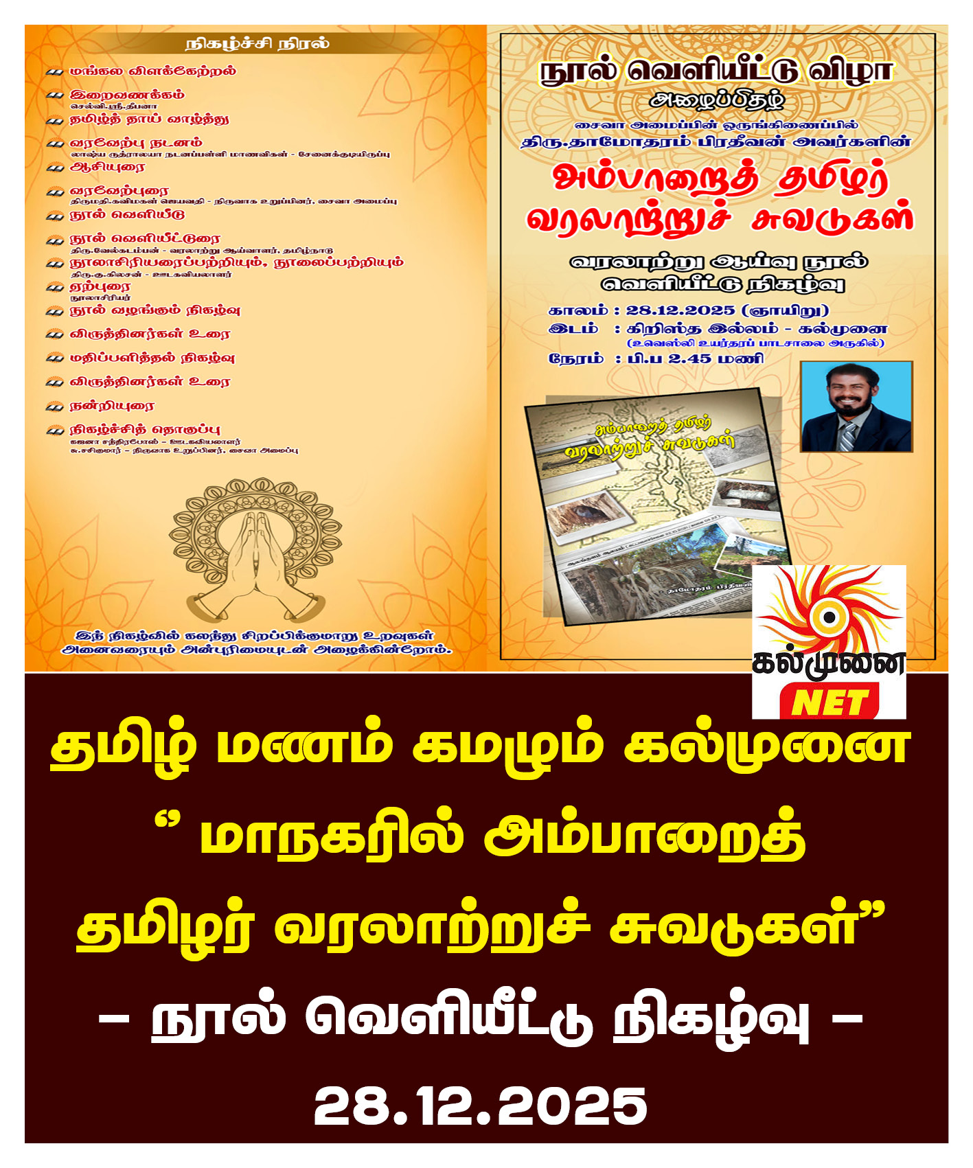 தமிழ் மணம் கமழும் கல்முனை ” மாநகரில் அம்பாறைத் தமிழர் வரலாற்று சுவடுகள்”
