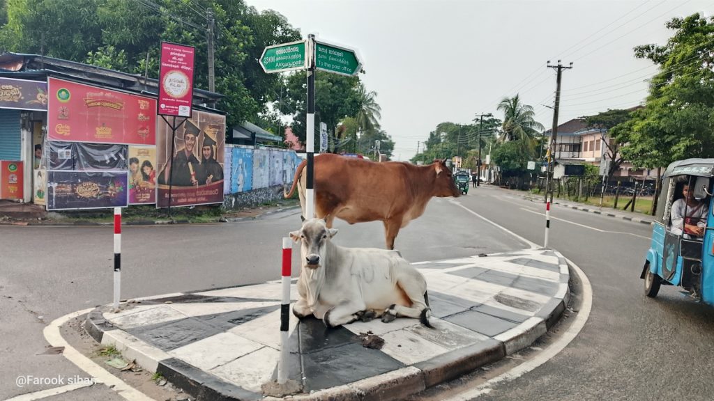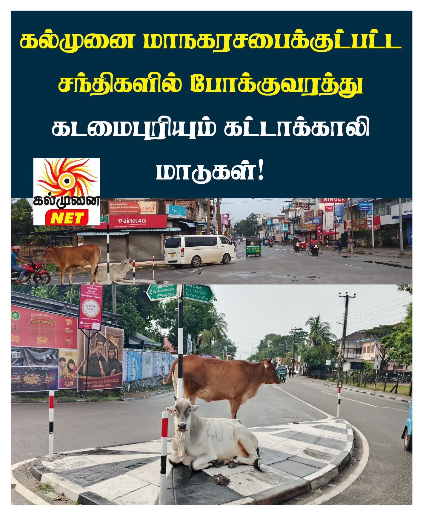 கட்டாக்காலி மாடுகள் முக்கிய சந்திகளில் நின்று போக்குவரத்து கடமைகளை கடமைகளை மேற்கொண்டு வருகின்றது.