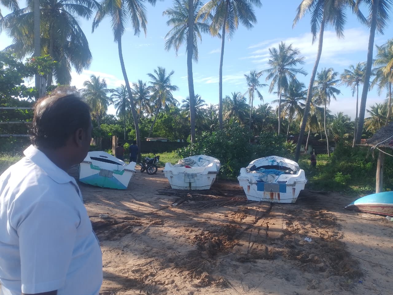 இன்று காலையில் எழுந்து பார்த்த மீனவர்கள் தமது குடிசைகளை காணாது அதிர்ச்சி அடைந்தார்கள். குடிசைகள் கடலுக்குள் அள்ளுண்டு கொண்டு செல்லப்பட்டுள்ளன.