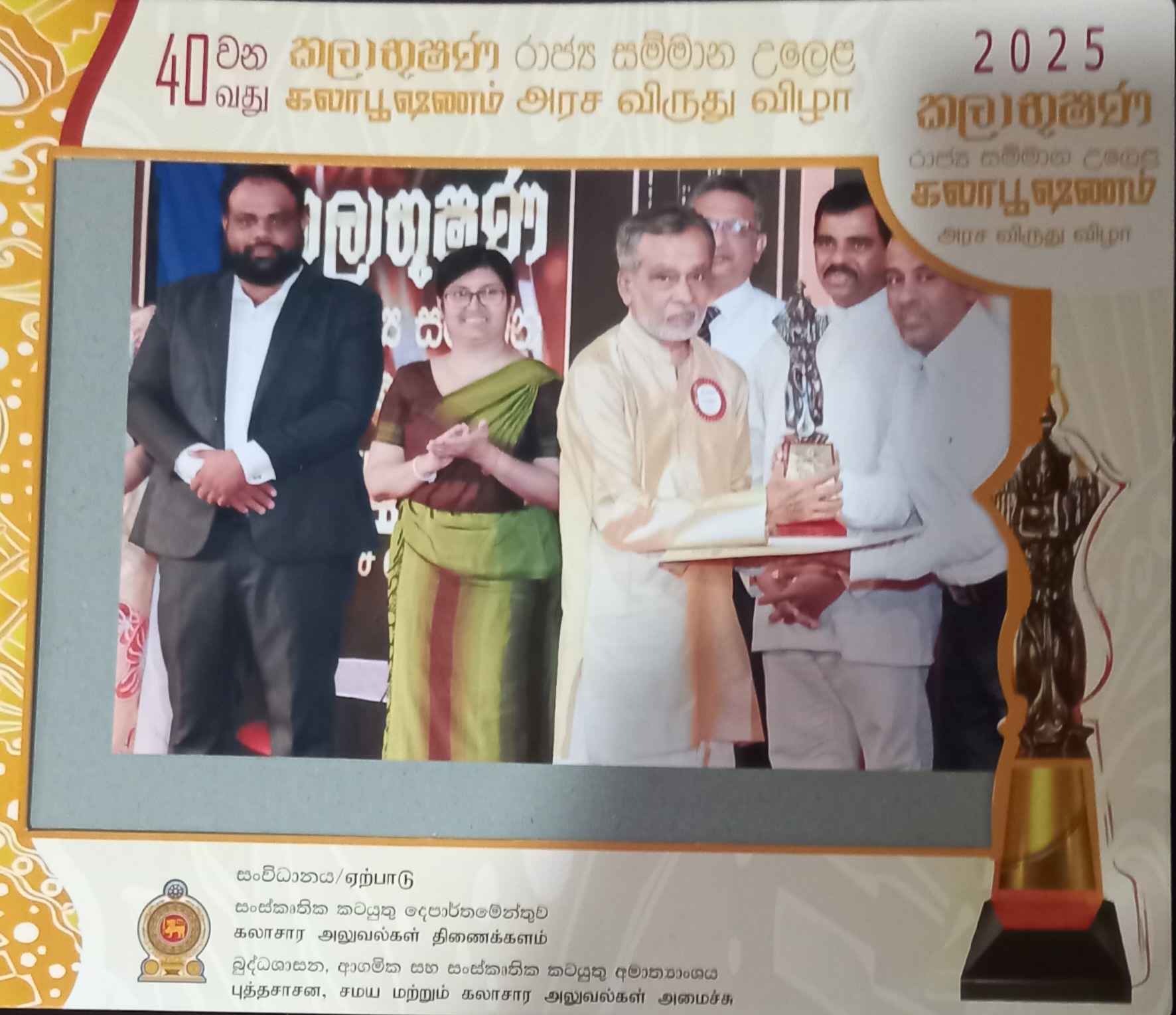 புத்தசாசன, சமய மற்றும் கலாசார அலுவல்கள் அமைச்சின் 40 ஆவது அரச விருது விழாவில் மட்டக்களப்பு பெரியகல்லாற்றைச் சேர்ந்த மூத்த எழுத்தாளரும்,  சிரேஸ்ட ஊடகவியலாளருமான வீ.கே.ரவீந்திரன் ( ரவிப்பிரியா)  அரச உயர் விருதான கலாபூஷணம் விருது வழங்கி கௌரவிக்கப்பட்டுள்ளார்.