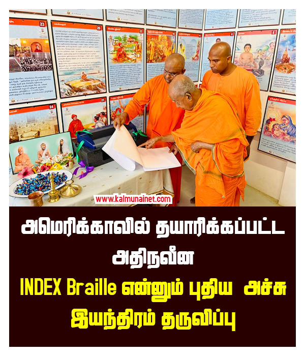 விழிப்புலனற்றோர் பயன்படுத்தும், அமெரிக்காவில் தயாரிக்கப்பட்ட அதிநவீன INDEX Braille என்னும் புதிய அச்சு இயந்திரம் மட்டக்களப்பிற்கு தருவிக்கப்பட்டுள்ளது.