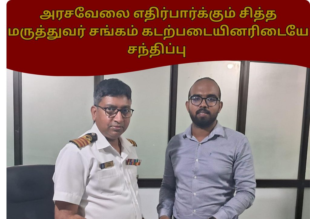 இதன் ஒரு பகுதியாக, அண்மையில் கடற்படை அதிகாரிகளை சந்தித்து, சித்த மருத்துவத்தின் மருத்துவத் திறன், நோய் எதிர்ப்பு சக்தி மேம்பாடு, தொற்றுநோய் தடுப்பு மற்றும் நீண்டகால பக்கவிளைவுகள் இல்லாத சிகிச்சை முறைகள் குறித்து விரிவாக கலந்துரையாடப்பட்டது. இந்த சந்திப்பின்போது, முப்படையினர் மற்றும் பொலிஸ் உத்தியோகத்தர்களின் உடல்நலப் பாதுகாப்பில் சித்த மருத்துவத்தை ஒருங்கிணைப்பதற்கான வாய்ப்புகள் குறித்து கருத்துக்கள் பரிமாறப்பட்டன.