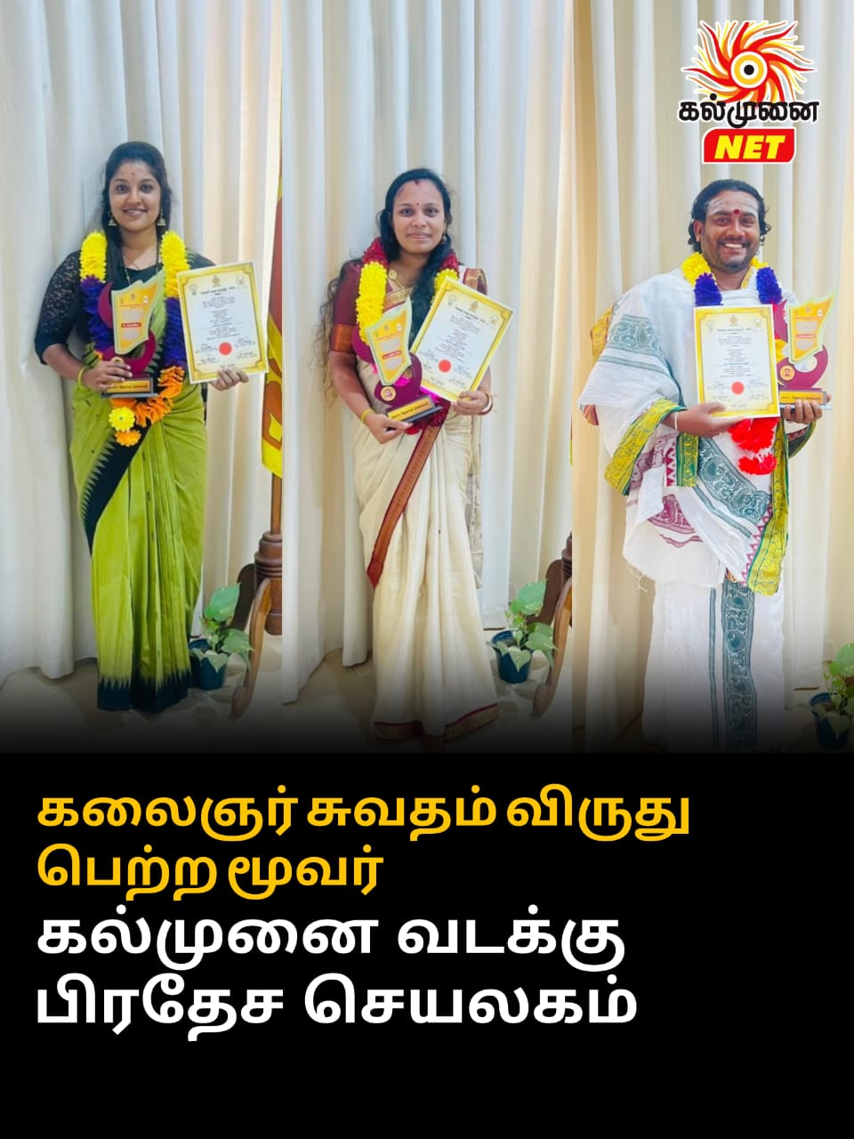 கலாசார பண்பாட்டலுவல்கள் திணைக்களத்தினால் வழங்கப்படுகின்ற கல்முனை வடக்கு பிரதேச செயலக பிரிவில் மூவருக்கு கலைஞர் சுவதம் விருது இன்று வழங்கிவைக்கப்பட்டன.