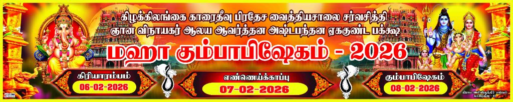 காரைதீவு வைத்தியசாலை சர்வ சித்தி விநாயகர் ஆலய மகா கும்பாபிஷேகம் நாளை ஆரம்பம்!