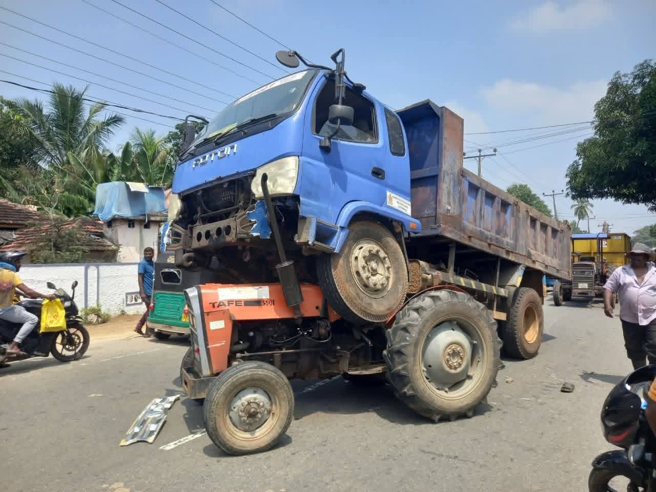 மட்டக்களப்பு – கல்முனை பிரதான வீதியில், பழுதடைந்த டிப்பர் வாகனத்தை உழவு இயந்திரம் ஒன்றின் உதவியுடன் கட்டி இழுத்துச் சென்றபோது, எதிர்பாராத விதமாக டிப்பர் வாகனம் உழவு இயந்திரத்தின் மேல் ஏறியதாக தெரிவிக்கப்படுகிறது.