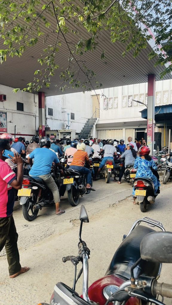 தற்போது எரிபொருள் நிரப்பு நிலையங்களின் முன்பாக என்றுமில்லாதளவில் நீண்ட வரிசைகளில் மக்கள் முண்டியடிக்க ஆரம்பித்துள்ளனர்.