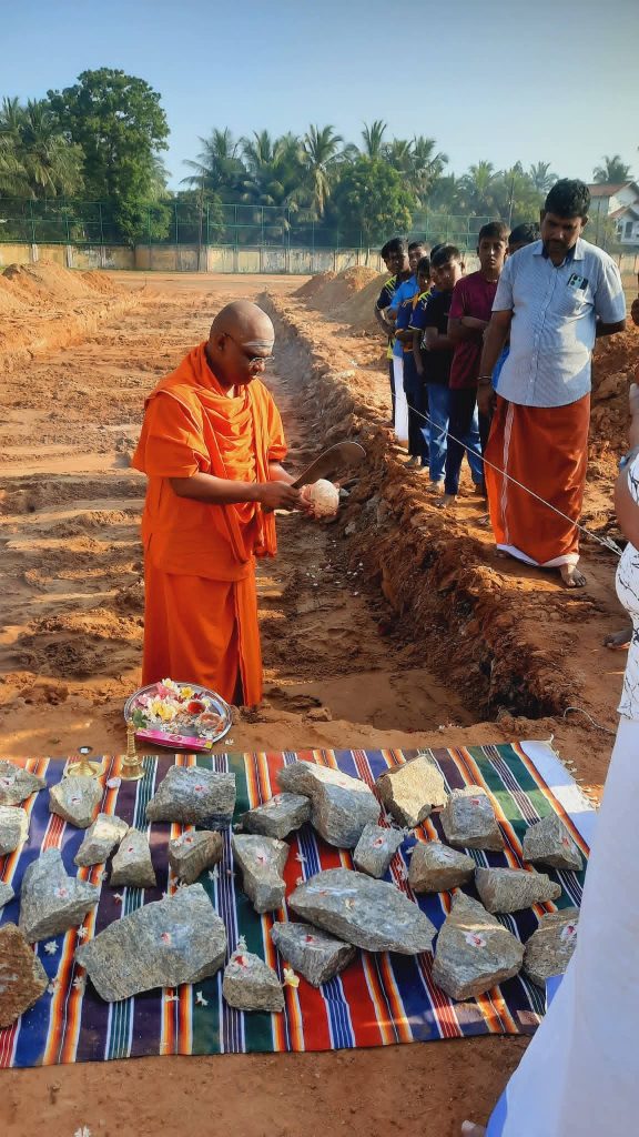 இராமகிருஷ்ண மிஷன் மட்டக்களப்பு மாநில பொது முகாமையாளர் சுவாமி நீலமதவானந்தாஜி பிரதம அதிதியாக கலந்து கொண்டு அடிக்கல் நாட்டி வைத்தார்.