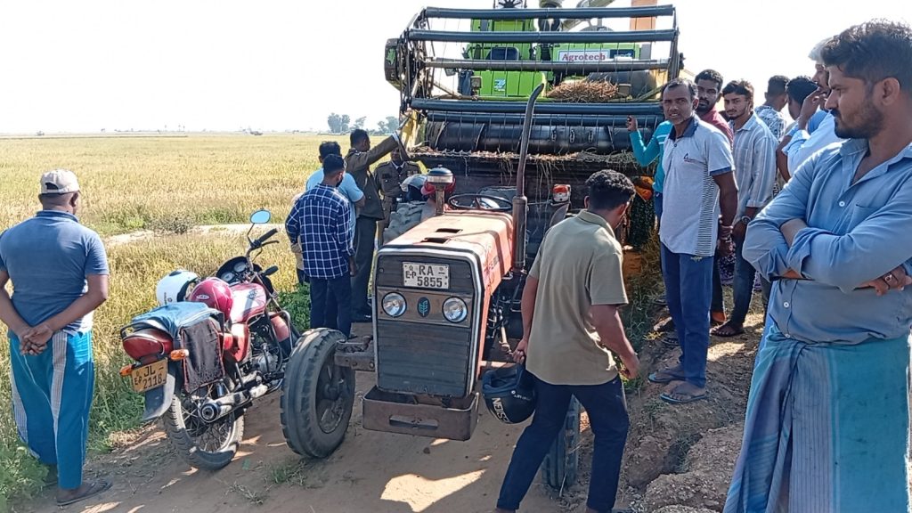 அறுவடை இயந்திரத்தை ஏற்றி உழவு இயந்திரத்தை செலுத்தி வந்த சாரதியின் சடலம் காரைதீவு பொலிஸாரினால் மீட்கப்பட்டுள்ளது.