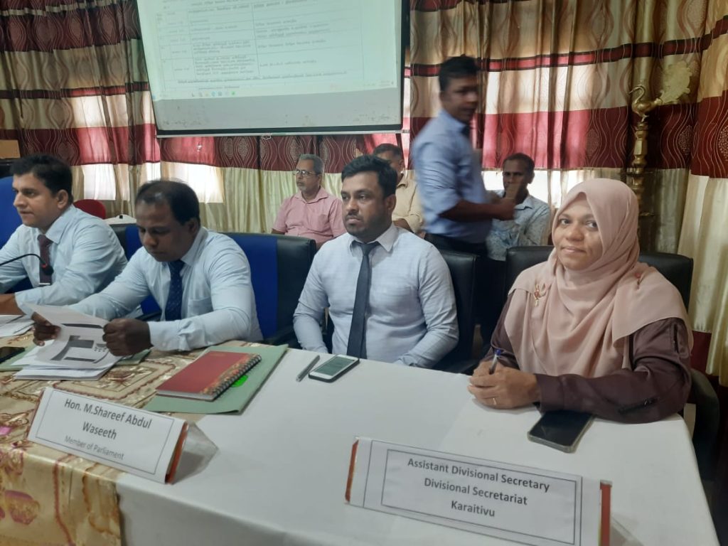 கூட்டம் அம்பாறை மாவட்ட கரையோர பிரதேசங்களின் ஒருங்கிணைப்பு குழுத் தலைவரும், அரசியலமைப்பு பேரவையின் உறுப்பினரும், நாடாளுமன்ற உறுப்பினருமான அபூபக்கர் ஆதம்பாவா தலைமையில் இடம்பெற்றது.