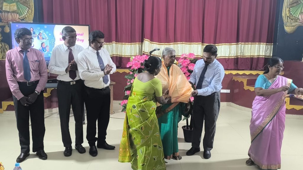 ஓய்வு நிலை அதிபர் கலாதேவி பொன்னம்பலம் கலாசாலை முகாமைத்துவக் குழுவினரால் பொன்னாடை போர்த்தியும் மாலை அணிவித்தும் கௌரவிக்கப்பட்டார்.