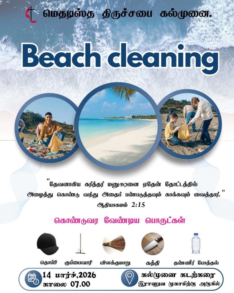 கல்முனை வைஎம்சீஏ( YMCA) அனுசரணையுடன், கல்முனை மெதடிஸ்த திருச்சபையினால் இன்று (14) சனிக்கிழமை காலை கல்முனை கடற்கரைப் பகுதி சுத்தம் செய்யப்பட்டது.