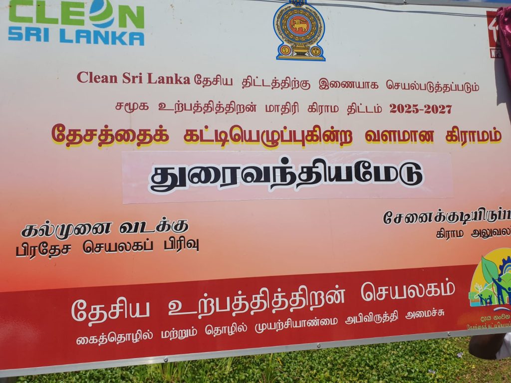 கல்முனை வடக்கு பிரதேச செயலகப் பிரிவிலுள்ள சேனைக்குடியிருப்பு 01 ஏ கிராம உத்தியோகத்தர் பிரிவில் உள்ள துரைவந்தியமேடு கிராமத்தில் அரசாங்கத்தினால் கிளீன் ஸ்ரீலங்கா வேலைத்திட்டத்தின்கீழ்
