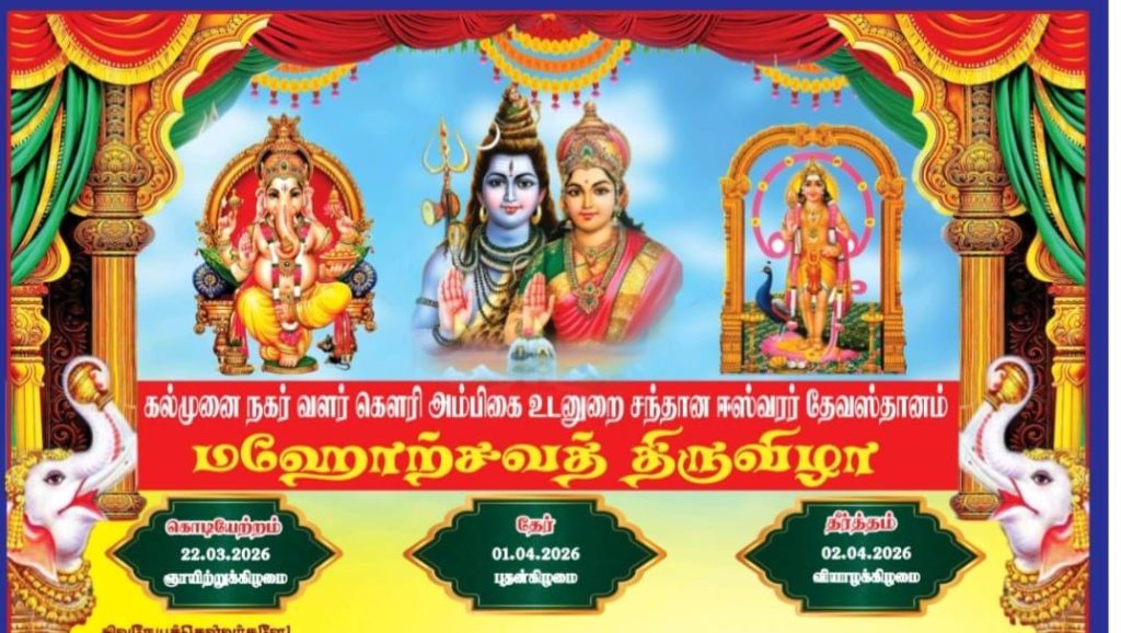 திருவிழாவின் முக்கிய நிகழ்வான தேர் திருவிழா 01.04.2026 (புதன்கிழமை) அன்று அதிகாலை முதல் நடைபெறவுள்ளது.