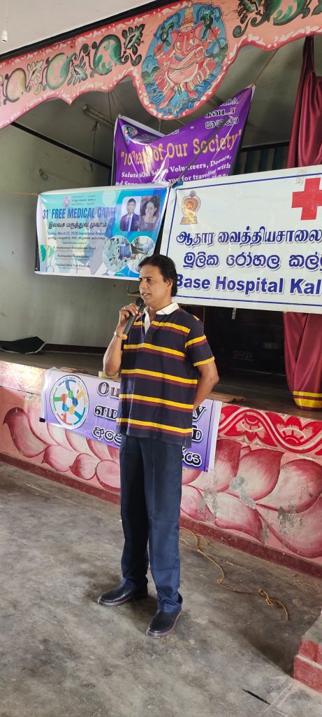 இம் முகாமில் அம்பாறை மாவட்ட மக்களுக்கு இலவச மருத்துவ பரிசோதனைகள், ஆலோசனைகள் மற்றும் தேவையான சிகிச்சைகள் வழங்கப்பட்டன. பாடசாலை மாணவர்களுக்கு உள்ள மற்றும் வலுவூட்டும் பயிற்சியை, கல்முனை ஆதார வைத்தியசாலை பணிப்பாளர் மருத்துவர் குணசிங்கம் சுகுணன் நிகழ்த்தினார்.