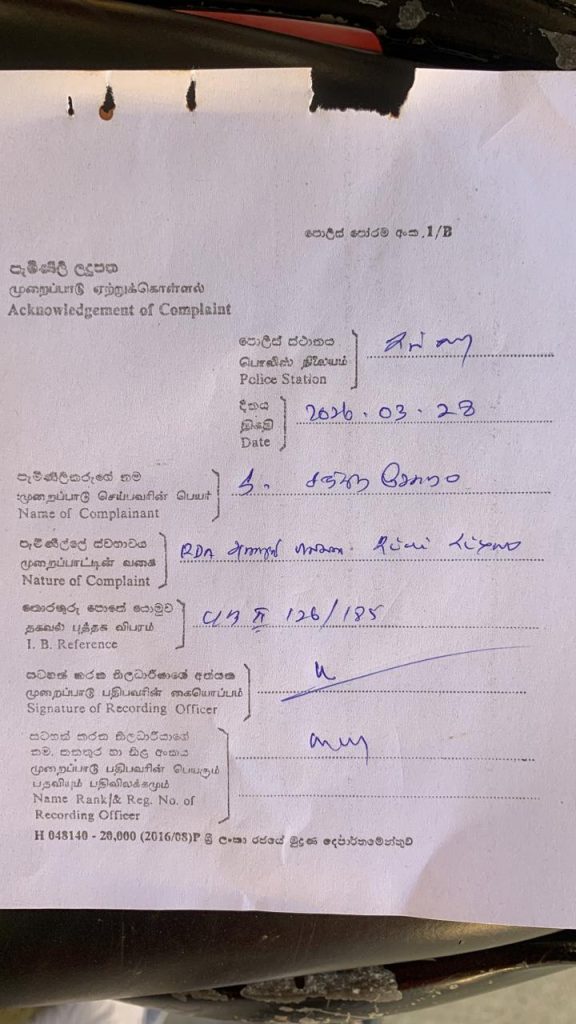 இவை எல்லாம்  போலீஸ் முறைப்பாட்டிலே  சொல்லப்பட்டிருக்கின்றது .