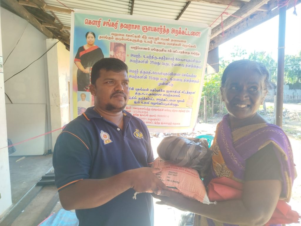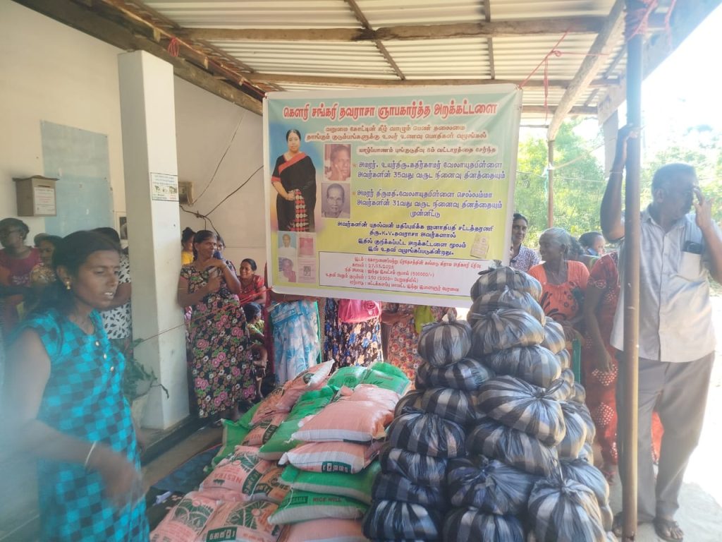 கௌரி சங்கரி தவராசா ஞாபகார்த்த அறக்கட்டளை மூலம்   யாழ்ப்பாணம் புங்குடுதீவு  எட்டாம் (08) ஆம் வட்டாரத்தை சேர்ந்த அமரர் கதிர்காமர் வேலாயுதபிள்ளை அவர்களின் 35 ஆவது வருட நினைவு தினத்தையும், அமரர் திருமதி. வேலாயுதபிள்ளை செல்லம்மா அவர்களின் 31வது வருட நினைவு தினத்தையும் முன்னிட்டு இவர்களின்   புதல்வன்  ஜனாதிபதி சட்டத்தரணி கே.வி.தவராசாவின் வழங்கப்பட்ட ஐந்து இலட்சம் மூலம் 250 குடும்பங்களுக்கு இரண்டாயிரம்  ரூபாய் பெறுமதியான உலர் உணவுப் பொதிகள் வழங்கி  வழங்கப்பட்டது.
