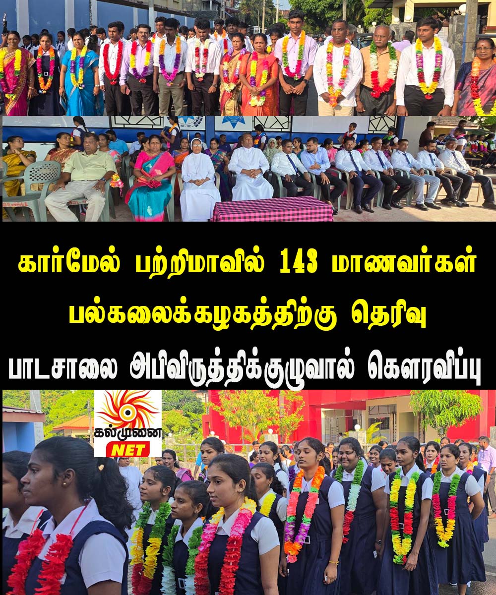 வெளியாகிய G.C.E.A/L 2025 (2026) பரீட்சை பெறுபெறுகளின் அடிப்படையில் கல்முனை கார்மேல் பற்றிமா தேசிய பாடசாலையில் பல்கலைக்கழகத்திற்கு தெரிவு செய்யப்பட்ட மாணவர்களை பாராட்டி கௌரவிக்கும் நிகழ்வு பாடசாலையின் அபிவிருத்தி நிறைவேற்று குழுவினரின் ஏற்பாட்டில் அதிபர் அருட். சகோ. ச. இ. றெஜினோல்ட் FSC அவர்களின் தலைமையில் (07.04.2026) காலை ஒன்றுகூடலில் இடம்பெற்றது.