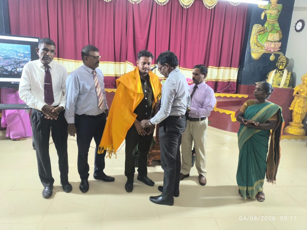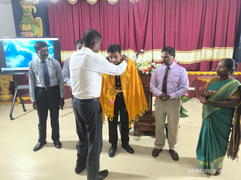 அதிதி பேச்சாளர் கலாசாலை முகாமைத்துவக் குழுமத்தினரால் பொன்னாடை போர்த்தியும் மாலை அணிவித்தும் கௌரவிக்கப்பட்டார்.