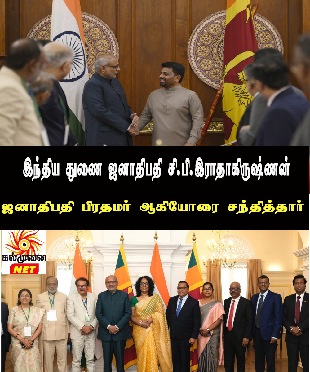 இலங்கைக்கு வருகை தந்துள்ள இந்திய துணை ஜனாதிபதி சி.பி.இராதாகிருஷ்ணன், ஜனாதிபதி அநுரகுமார திசாநாயக்கவை ஜனாதிபதி செயலகத்தில் சந்தித்த்தார்