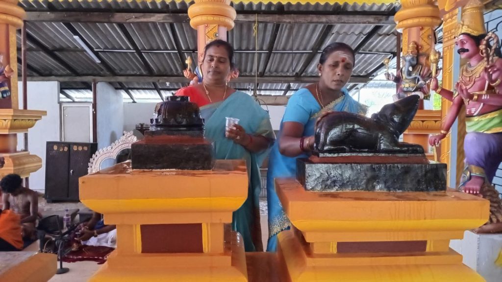 காரைதீவு ஶ்ரீ நந்தவன சித்தி விநாயகர் ஆலய மகா குடமுழுக்கு கும்பாபிஷேகத்திற்கான எண்ணெய்க்காப்பு சாத்தும் நிகழ்வு நேற்று (22) புதன்கிழமை நடைபெற்றது. இன்று வியாழக்கிழமை மகா கும்பாபிஷேகம்.